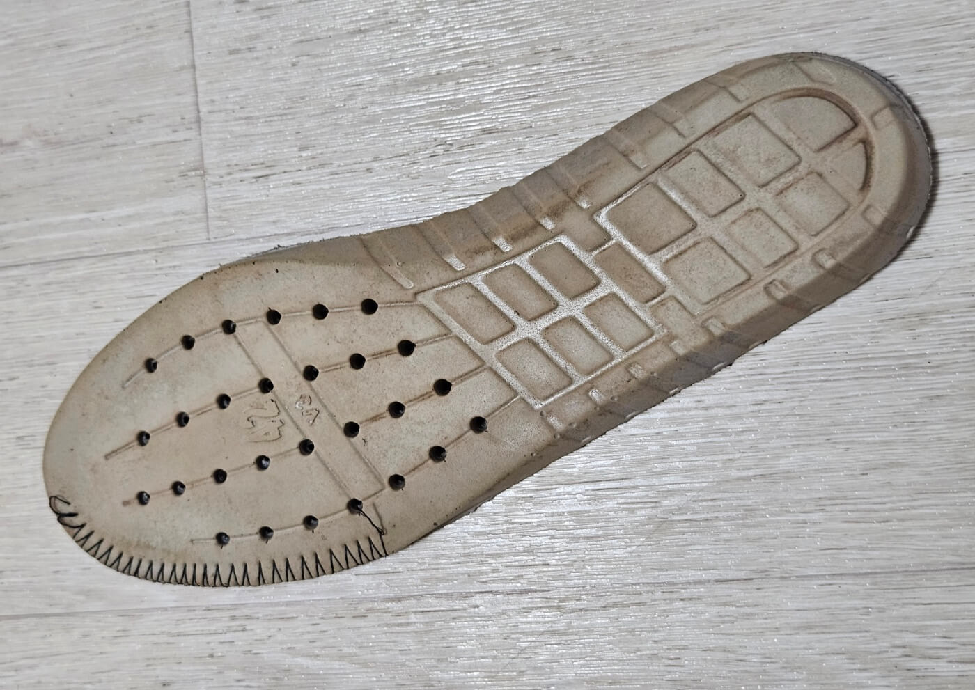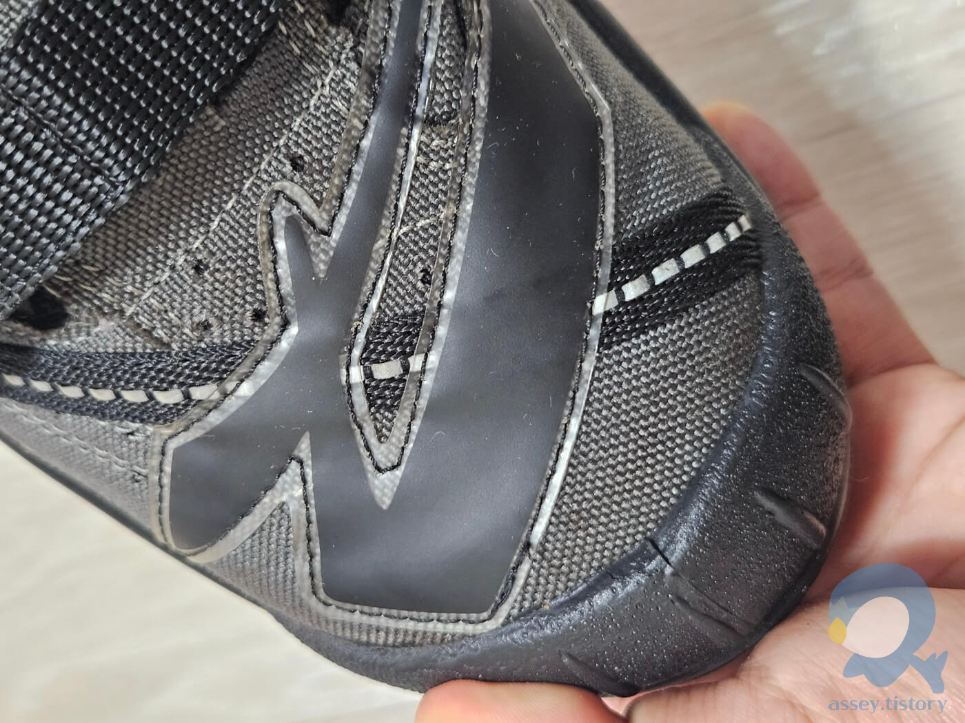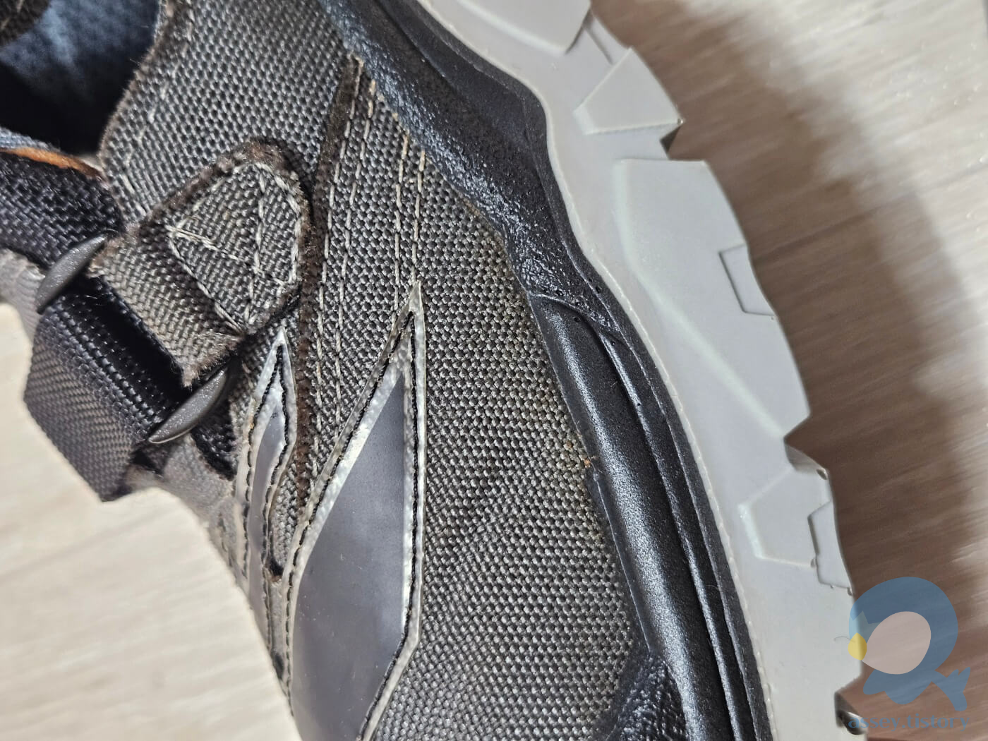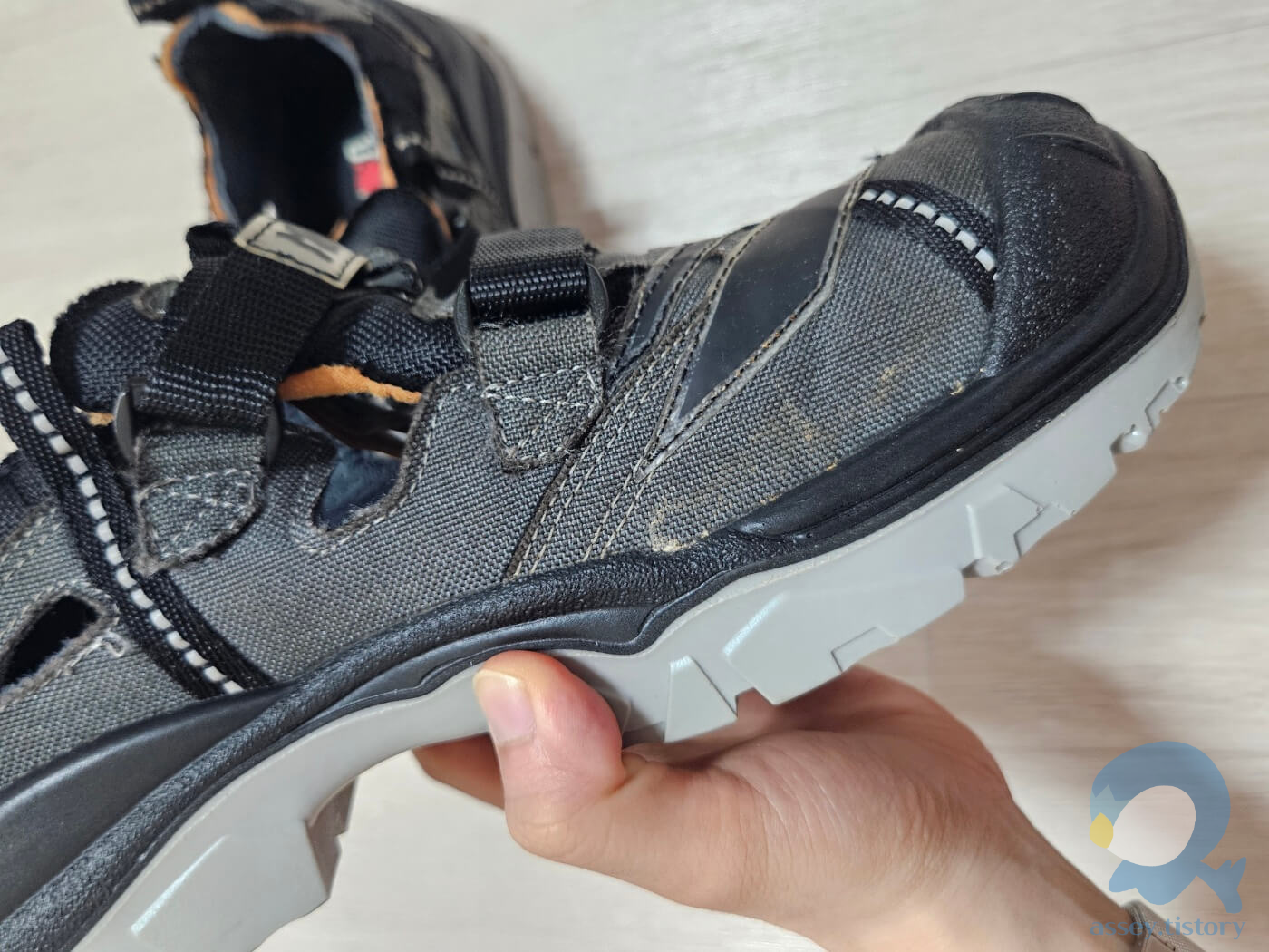 특히 흙먼지나 본드가 변색된듯한 더티 워싱이 적용되어 뭔가 정말 현장에서 구르다 온 작업화나 빈티지한 느낌을 받았다. 워싱은 개체에 따라 차이가 꽤 큰듯하며 내가 받은 제품은 크게 눈에 띄지는 않는 정도이다.