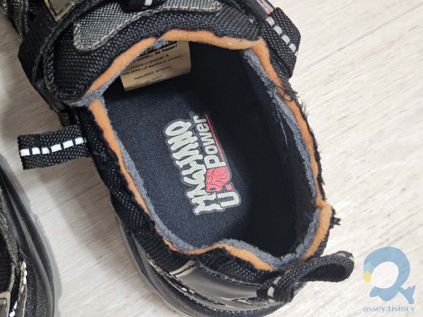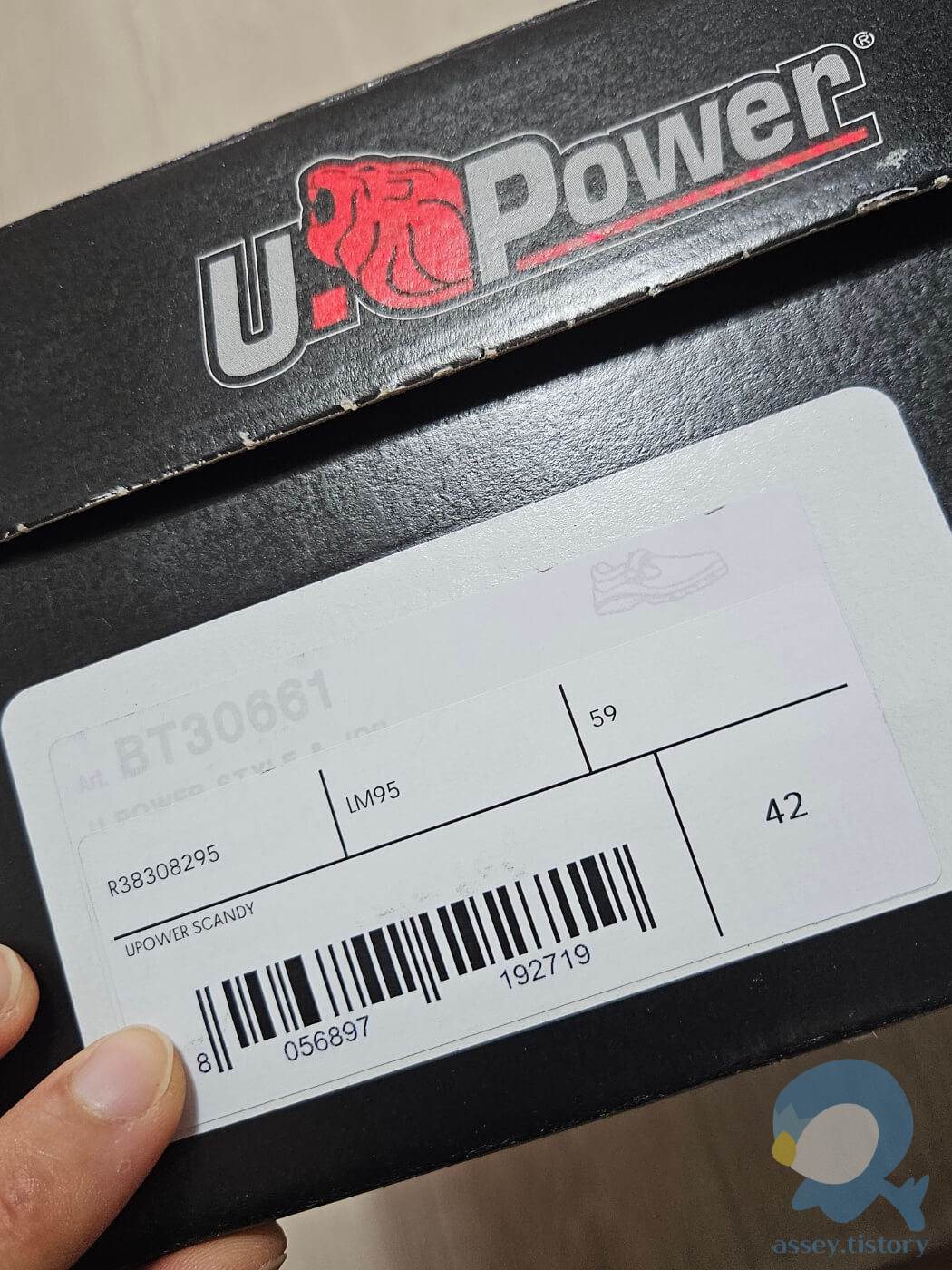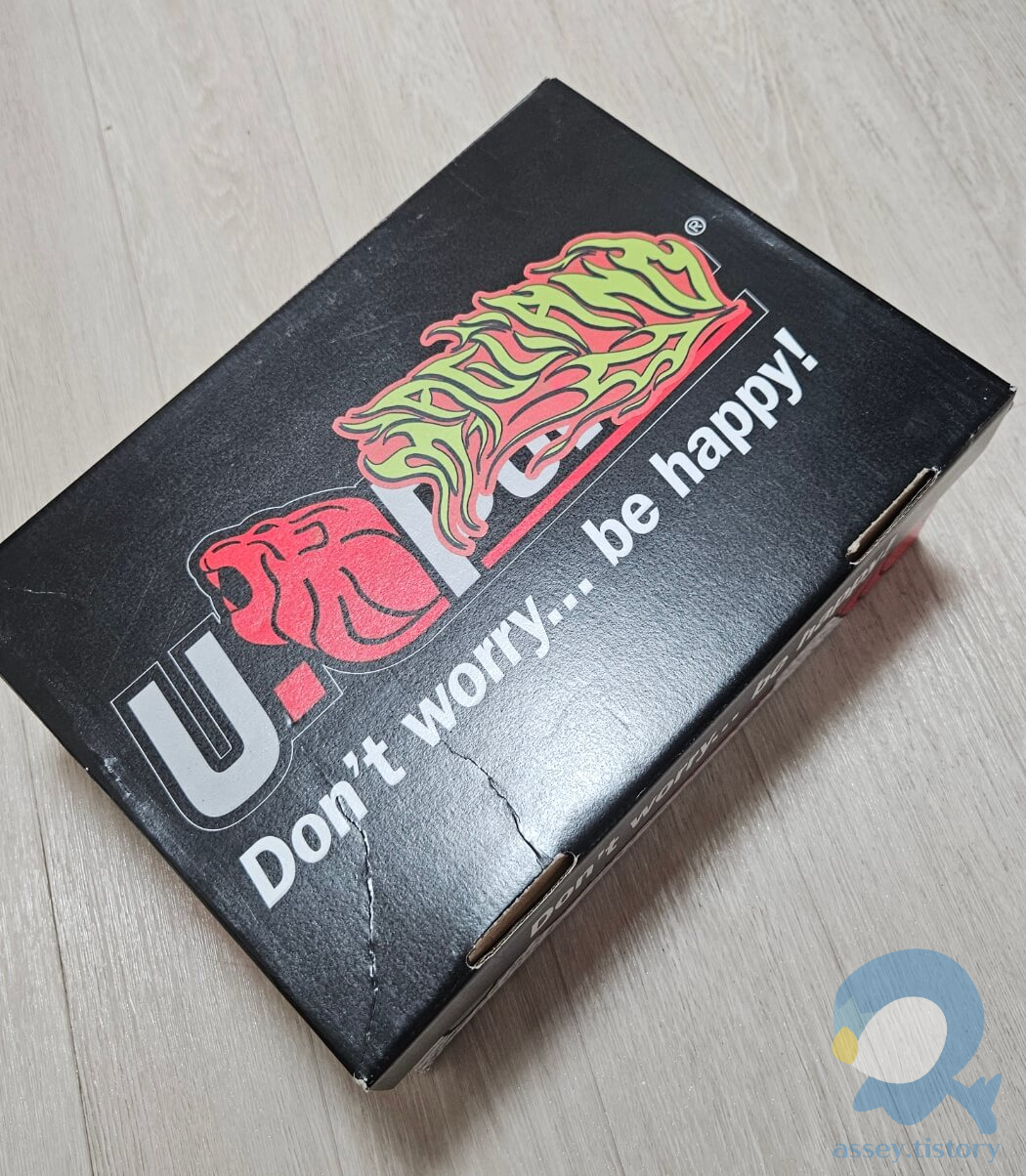 보면 다른 제품의 박스에 그대로 스티커 갈이를 한 것을 확인할 수 있었다. 숨길 노력조차 안 하는 걸 보아하니 나름 알아주길 원하는 느낌이 물씬 풍긴다. 유파워의 브랜드 명이나 로고는 확실히 안전화 브랜드에서 오는 특유의 남성적이고 투박한 그런 멋이 있다.