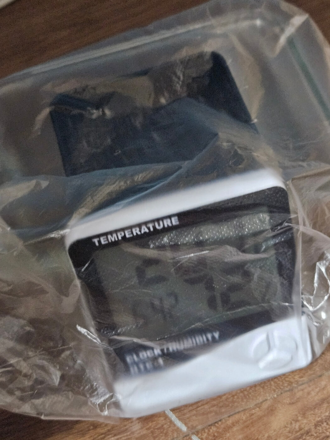 습도유지를 위해 비닐로 덮은 다음에 숨구멍 작게 몇개 뚫어줬다. 안에 싸구려 온 습도계도 같이 넣어 줌